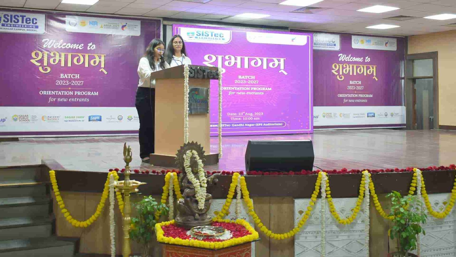 Sagar Group of Institutions-SISTec and Sagar Group of Institutions-SIPTec organized the orientation programme - SHUBHAGAM 2023 for the newly admitted students of B.Tech. and B.Pharm batch 2023-2027. It was a special day to commemorate the beginning of a new phase of students’ life. The programme was graced by the auspicious presence of (Director- Sagar Group of Institutions) Dr. Jyoti Dekhmukh, (Principal- SISTec), Dr. Dinesh Kumar Rajoriya, (Principal - SIPTec) Dr. Kuldeep Ganju and (Vice - Principal SISTec) Dr. Swati Saxena. The auditorium was full to its capacity with new faces, ambitious eyes and aspiring minds.