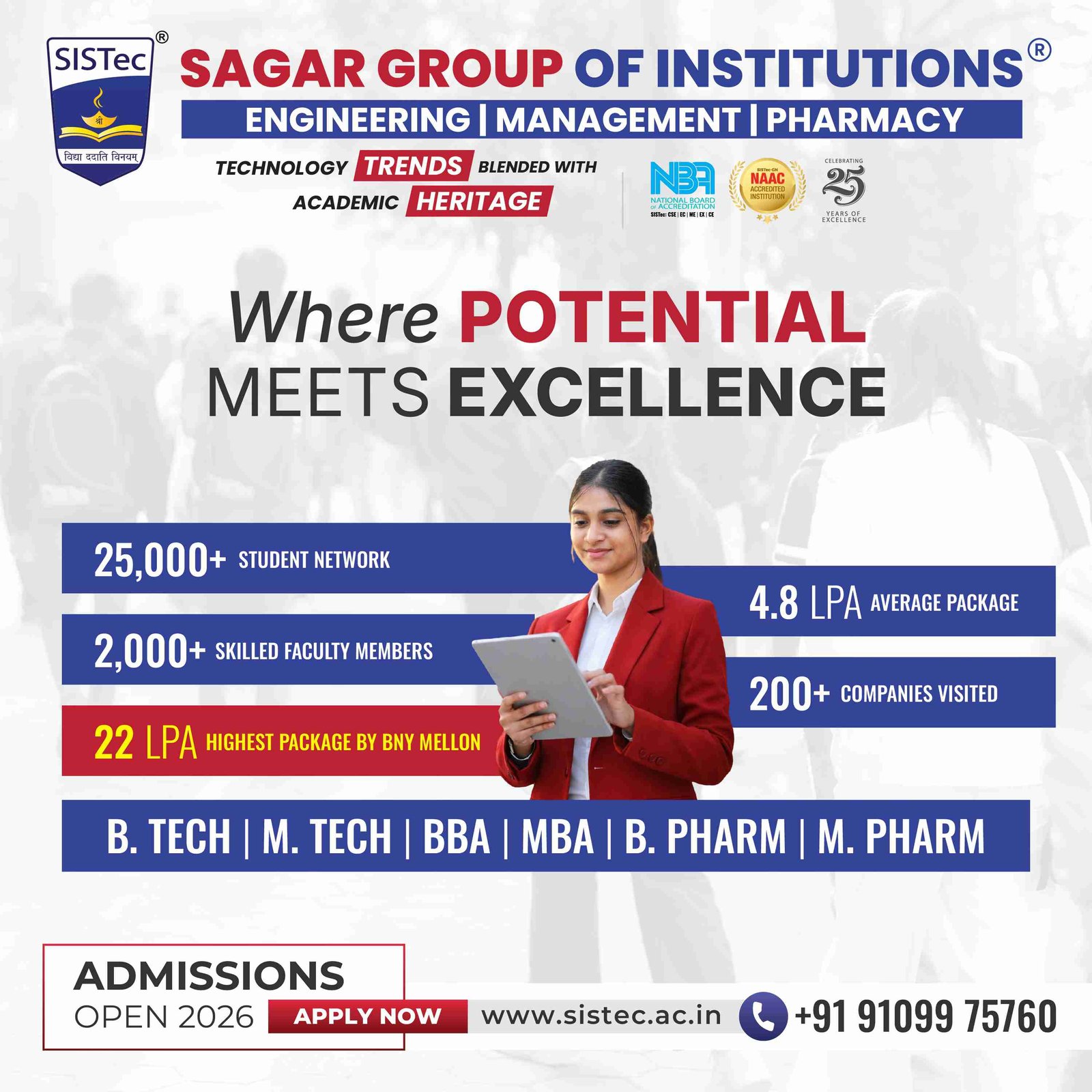 All the milestones of achievement were possible under the dynamic leadership of the founder Chairman of the Group Sudhir Kumar Agrawal Ji and young and dynamic Managing Director of the Group Siddharth Sudhir Agrawal. Our vision is to provide pharmacy students the best technical education via SIPTec, the best college of pharmacy in Bhopal.
